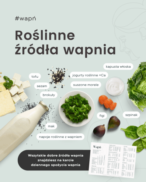 - Uważnie planuj dietę, szczególnie roślinną – jedz odpowiednio dużo roślinnych źródeł wapnia.